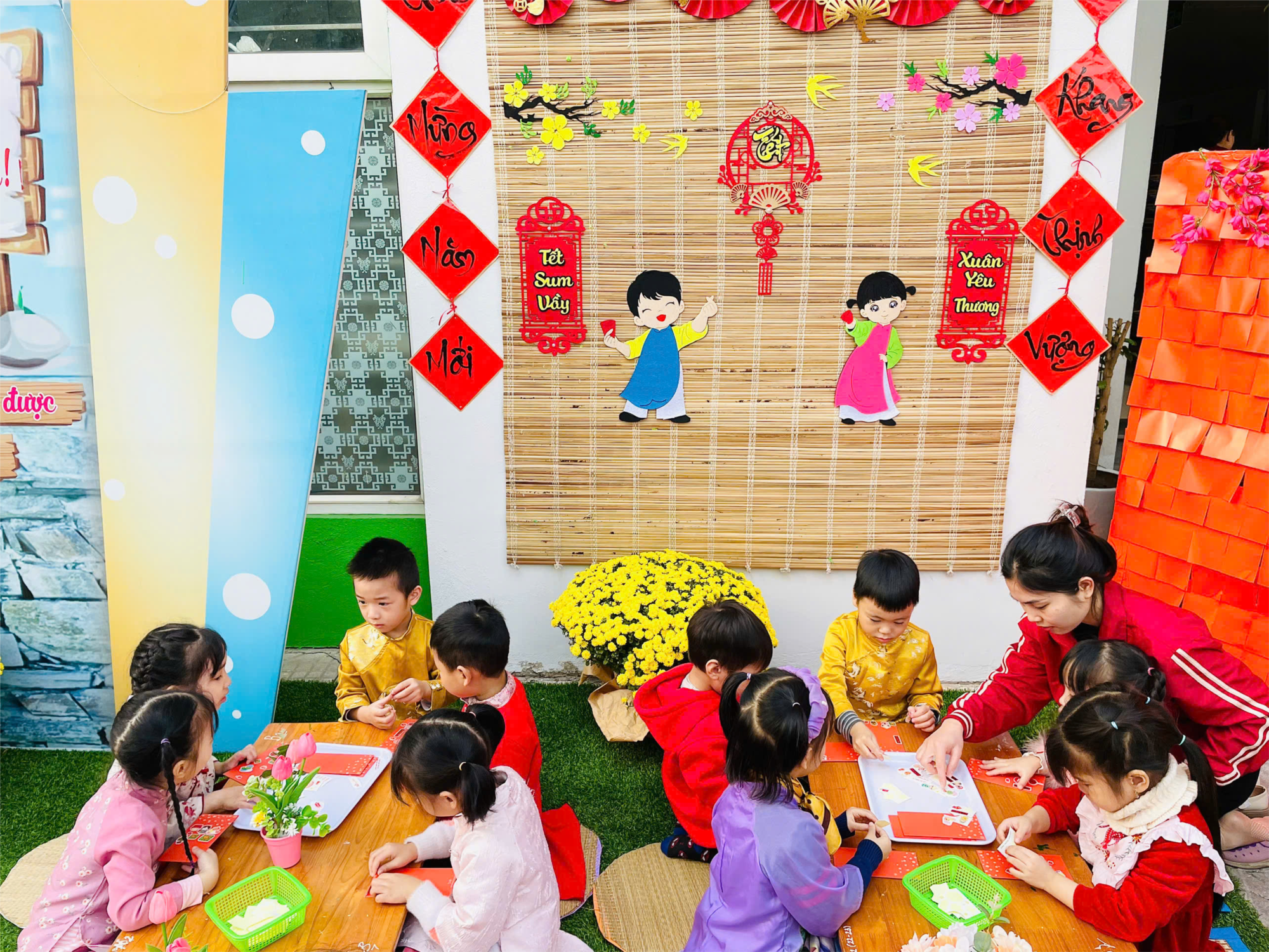 Trong làn gió se lạnh của những ngày cuối đông, những bông đào, bông mai đã dần khoe sắc thắm, gọi chúng ta trở về với ngày Tết Nguyên Đán cổ truyền của dân tộc. Đối với con trẻ, Tết có lẽ chỉ đơn giản là được nghỉ học, được mừng tuổi, được xem pháo hoa, được đi chơi và lớn thêm một tuổi… Giữa cái vội vàng, náo nhiệt của nhịp sống hiện đại, chẳng còn nhiều em bé được theo mẹ đến phiên chợ cuối năm, cũng chẳng có nhiều em bé được cùng ông bà bố mẹ gói bánh chưng chiều 29, 30 Tết. Tết Nguyên Đán - cái Tết lớn nhất trong năm của người Việt! Không chỉ là thời khắc giao mùa chuyển giao từ năm cũ sang năm mới, không chỉ là dịp nghỉ lễ cuối năm… Tết là dịp để con cháu đi xa trở về tụ họp bên gia đình, thể hiện lòng biết ơn với ông bà tổ tiên. Tết là dịp để thăm hỏi người thân bạn bè và gửi tới nhau những lời chúc tốt đẹp nhất cho một năm mới đầy may mắn. Và Tết cũng là dịp để dạy cho trẻ biết về những giá trị truyền thống tốt đẹp của dân tộc. Hòa trong không khí náo nức đón xuân trên khắp mọi miền tổ quốc Việt Nam, nhằm giáo dục cho trẻ nét đẹp văn hóa truyền thống của dân tộc. Trường mầm non Gia Thượng tổ chức hoạt động “Tết sum vầy- xuân yêu thương” cho trẻ. Các bé được tham gia vào các hoạt động vô cùng ý nghĩa, được xem các tiết mục văn nghệ, được cùng cô giáo, phụ huynh và các bạn cùng lớp gói bánh chưng, được chụp các bức hình rất đẹp để lưu lại những khoảnh khắc vui vẻ trong ngày hội tết. Ngoài ra các bé còn được tham gia vào các gian hàng tết của trường, bạn thì làm đồ Hand made, bạn thì bán hàng… trên gương mặt bạn nào cũng rất vui vẻ. Không những thế, các bé còn được tham gia vào các trò chơi dân gian như nhảy bao bố, kéo co, nhảy. Hoạt động trải nghiệm " Tết sum vầy- xuân yêu thương " để lại trong lòng mỗi người những dư âm tốt đẹp về ngày tết cổ truyền, qua đó cũng tạo cơ hội để các bé tìm hiểu, làm quen với các phong tục tập quán của quê hương, tự hào về những nét văn hóa, truyền thống của dân tộc. Những hoạt động bổ ích, ý nghĩa này đã gieo vào trong tâm hồn trẻ thơ về những nét văn hóa truyền thống để có ý thức tiếp nối truyền thống, giữ gìn bản sắc văn hóa dân tộc, đặc biệt trong mỗi dịp Tết đến xuân về …Dưới đây là 1 số hình ảnh các con tham gia hoạt động: