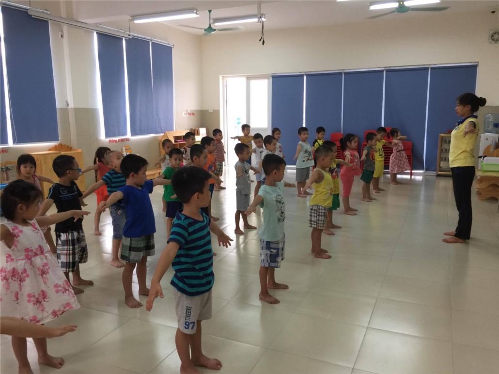 Các bé tập thể dục sáng để tăng cường sức khỏe