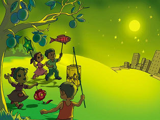 Múa theo lũ trẻ tắm trăng chơi đùa